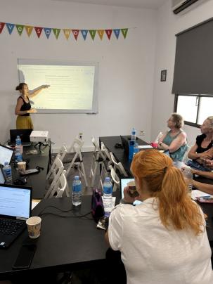 " Kurz byl zaměřen na využití online nástrojů a umělé inteligence ve výuce. Probíhal v mezinárodní skupině Čechů a Poláků, lektor byl z Rumunska, žijící 10 let ve Španělsku. Byl veden v angličtině. Využívali jsme především chat GPT, jeho personalizaci a také aplikaci MagicSchool. Lektor nás vedl, my jsme si sami jednotlivé nástroje zkoušeli na praktických úkolech, některé naše závěry jsme před skupinou prezentovali.
